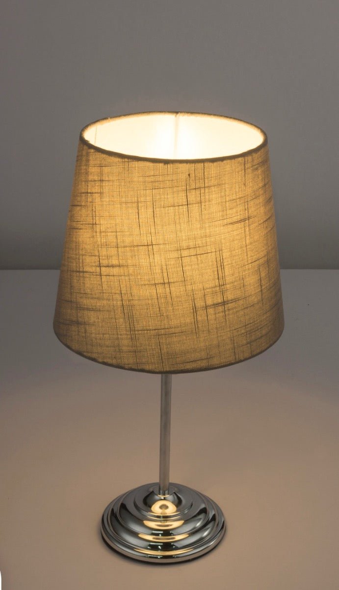 1XE14 (Bombilla Excluida) MAX40W Material: Metal, Textil Color: Gris, Cromado Tamaño: 460 x 240 mm (Alto x Diámetro) Ip 20 Uso Interior Táctil