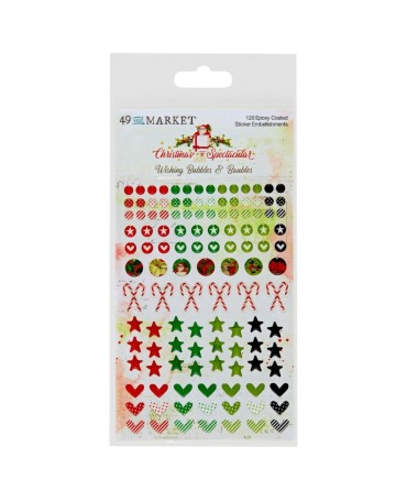 Wishing Bubbles and Baubles 49 MARKET Christmas Spectacular 2023 120 adornos adhesivos recubiertos de epoxi. Estos adornos y burbujas vienen en muchos tamaños diferentes. El paquete incluye puntos, bastones de caramelo, estrellas y corazones en una variedad de colores. Imprescindible para darle un poco más de brillo y dimensión.
