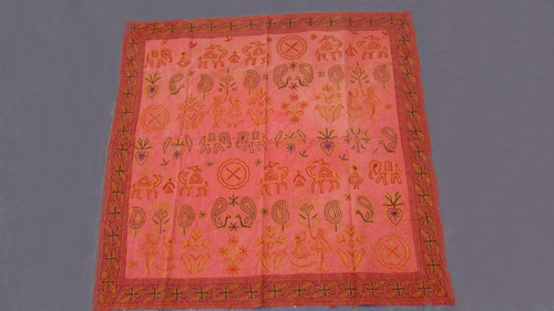 Tapiz de algodón con figuras rojo. 125 x 125 cm