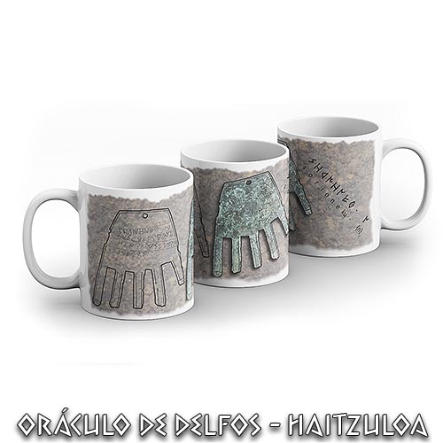 Hace un par de semanas se dio a conocer el hallazgo de la Mano de Irulegi, un antiguo amuleto con inscripciones en euskera antiguo de hace 2100 anos. La palabra descifrada es Sorioneku que significa afortunado. Es asi, un amuleto de proteccion contra los malos augurios y de suerte y fortuna para el hogar y su poseedor. Aqui te presentamos la Taza mano de Irulegi.