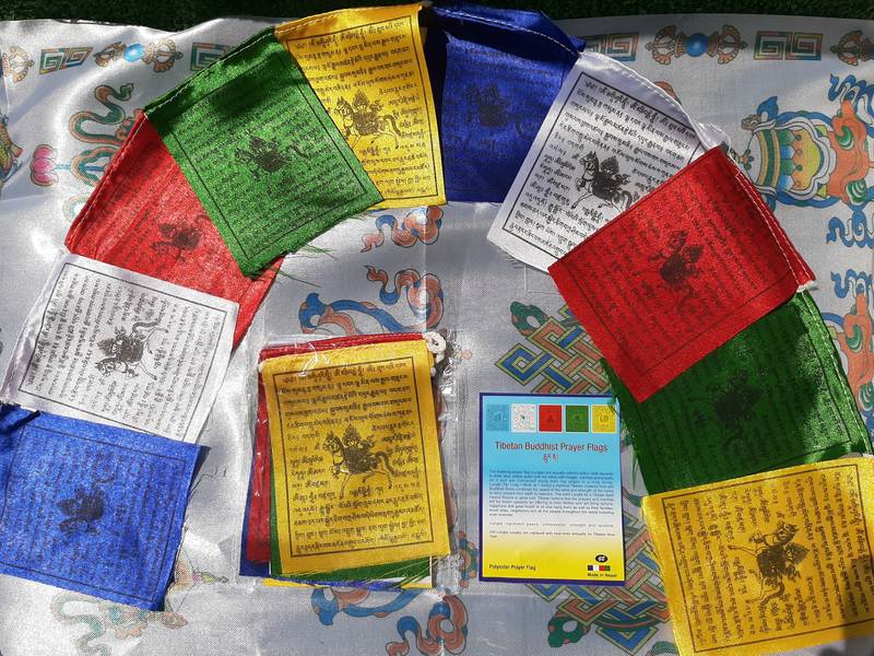 - Proposito espiritual: Las banderas tibetanas se cuelgan al aire libre con la intencion de que el viento lleve sus mensajes y oraciones a lo largo de la tierra, asi como para bendecir el entorno.